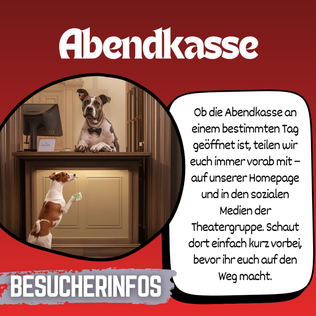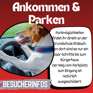 Hinweise zum Parken: Während unserer Aufführungen stehen die Parkplätze an der Grundschule in Etzbach zur Verfügung. Die Zufahrt in ausgeschildert, ebenso wie der Weg zum Eingang der Spielstätte im Bürgerhaus Etzbach.